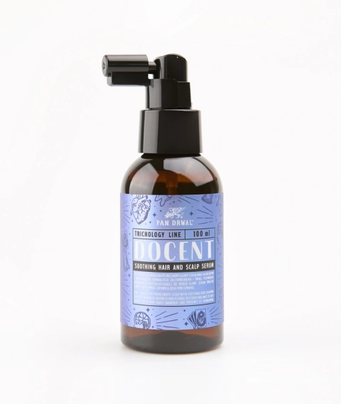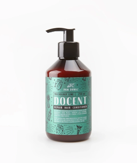 Linia kosmetyków naturalnych Docent jest odpowiedzią na potrzeby mężczyzn zmagających się ze skórą problematyczną. Uwielbiasz olejki do brody Pan Drwal, ale Twoja skóra i zarost potrzebują cięższej artylerii? Linia Docent została oparta na innowacyjnym nawilżającym peptydzie, dzięki któremu skóra łuszcząca się, swędząca i zaczerwieniona nareszcie zazna ukojenia. Matowy balsam do brody to opcja idealna dla posiadacza skóry tłustej, ze skłonnością do trądziku - pomaga okiełznać efekt błyszczenia. Olejek Docent jest w rzeczywistości lekkim odżywczym serum, które nawilża, jednocześnie delikatnie matując skórę i brodę. Uzupełnieniem linii Docent jest naturalny żel pod prysznic, którego łagodne działanie pokocha przesuszona, podrażniona skóra. Dla mężczyzn sięgających regularnie po maszynkę lub brzytwę przygotowaliśmy łagodzący balsam po goleniu, który zminimalizuje ewentualne zaczerwienienie, a to wszystko bez szczypania tak charakterystycznego dla tradycyjnych aftershave’ów. Linia Docent jest wyrazem naukowych ambicji zespołu Pana Drwala. Wzmacniający szampon do Włosów doczekał się towarzyszy. Razem tworzą pierwszą na polskim rynku barberską linię szamponów trychologicznych. W zależności od potrzeb Twojej skóry głowy możesz wybierać spośród szamponów: wzmacniającego, do skóry wrażliwej, przeciwłupieżowego i oczyszczającego.